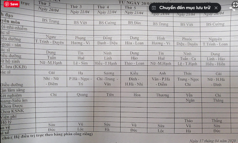 Lịch trực 20/4/2020-26/4/2020
