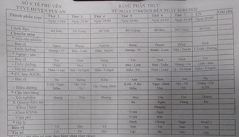 Lịch trực 27/4/2020-03/5/2020